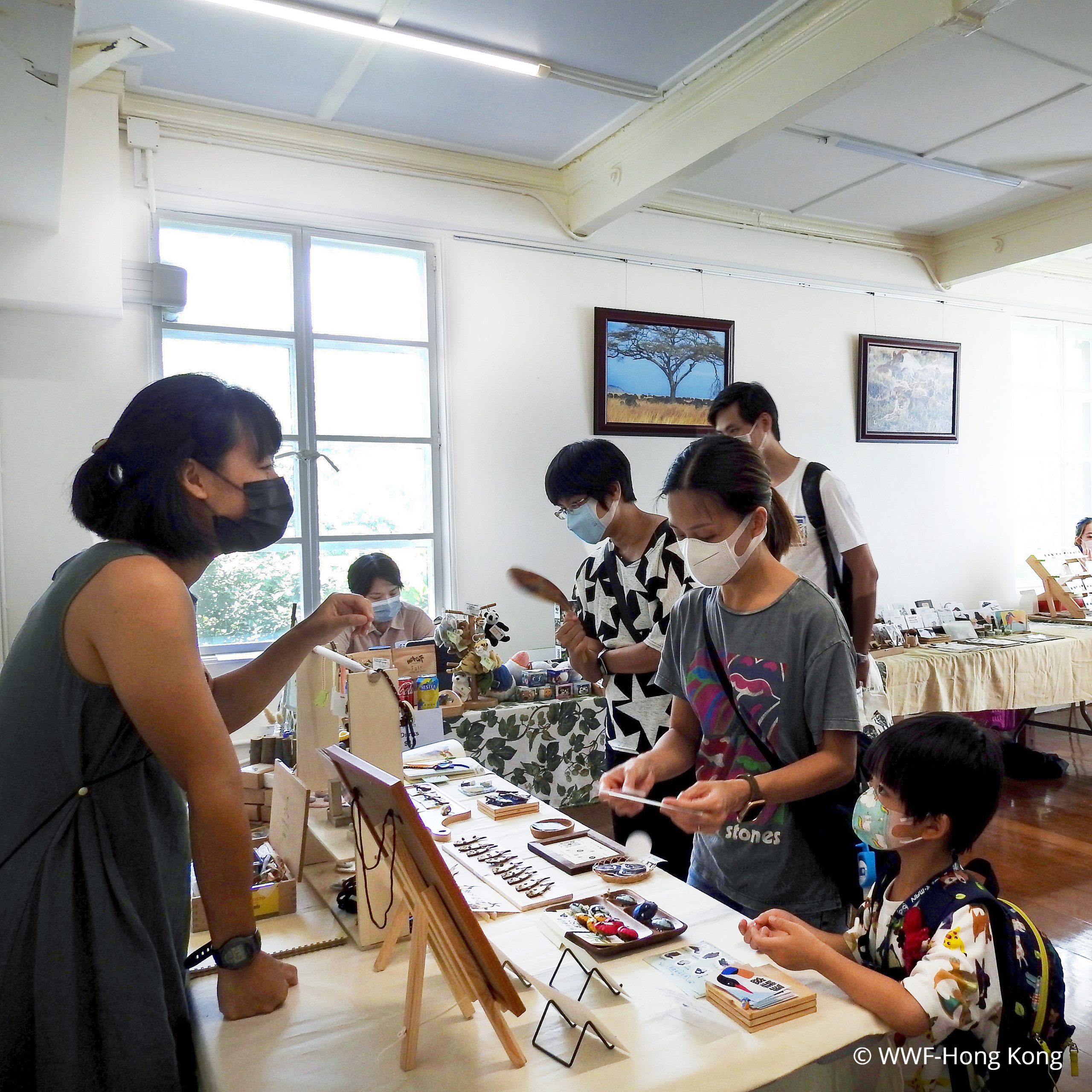 In order to raise the public awareness of Earth Hour, two ceramists from SJC, Lau Sze O and Hung Ming Him, have employed hand-building techniques to create three sets of animal sculptures inspired from four remarkable species. During the creating process, Sze O emphasised the patterned carapace of the Golden Coin Turtle’s figurine, while Ming Him was good at carving the intricate details, such as the curling feathers of Dalmatian Pelican. Both of them have also co-created a sculpture featuring Chevron Butterflyfish and Staghorn Corals together, which helps the public to understand more about the nature.